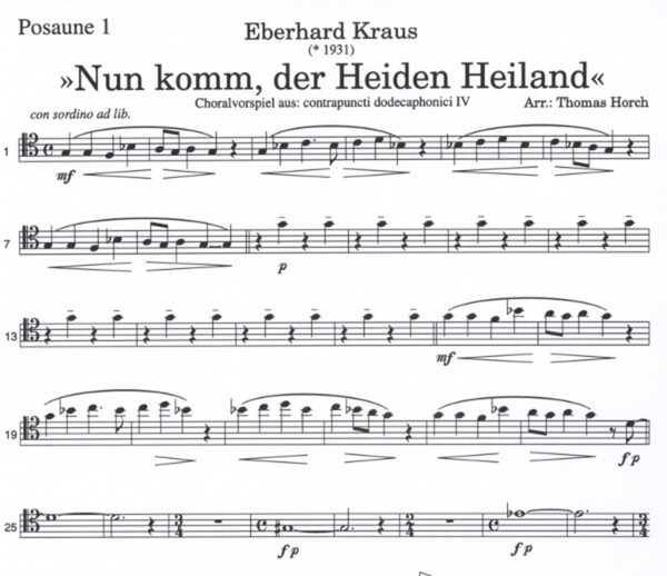 aus: Contrapuncti dod ecaphonici IV (Nun komm, der Heiden Heiland - Es ist ein Ros entsprungen, ge b.1931, 1., 2., 3.Pos im Tenorschlüssel, 4.Pos im Baßschlüssel)