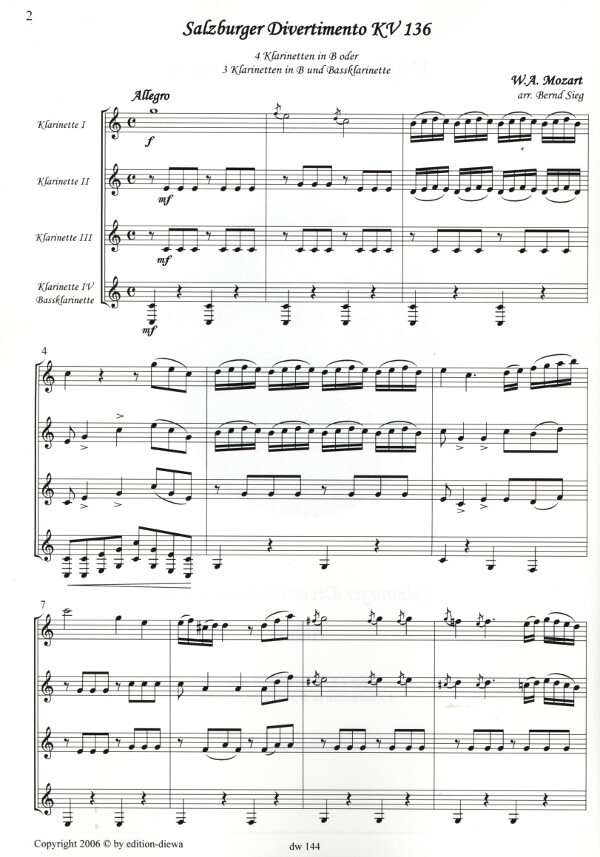 Allegro gelungene Bearbeitung für Klarinettenquartett