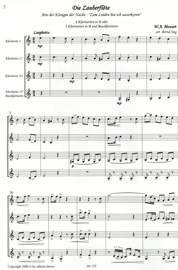 aus der Oper "Die Zauberflöte" sehr gut für Klarinettenquartett arrangiert,