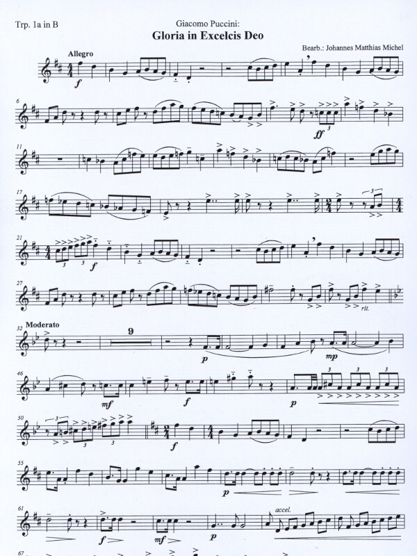 4 Trompeten in B/C, 4 Posaunen in C/B (es können 1 Trompete oder Posaunenstimme weggelassen werden), Tuba und Pauken