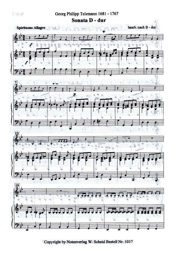 Sonate D-Dur (transponiert nach B-Dur)