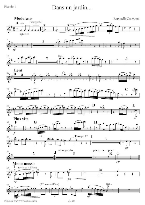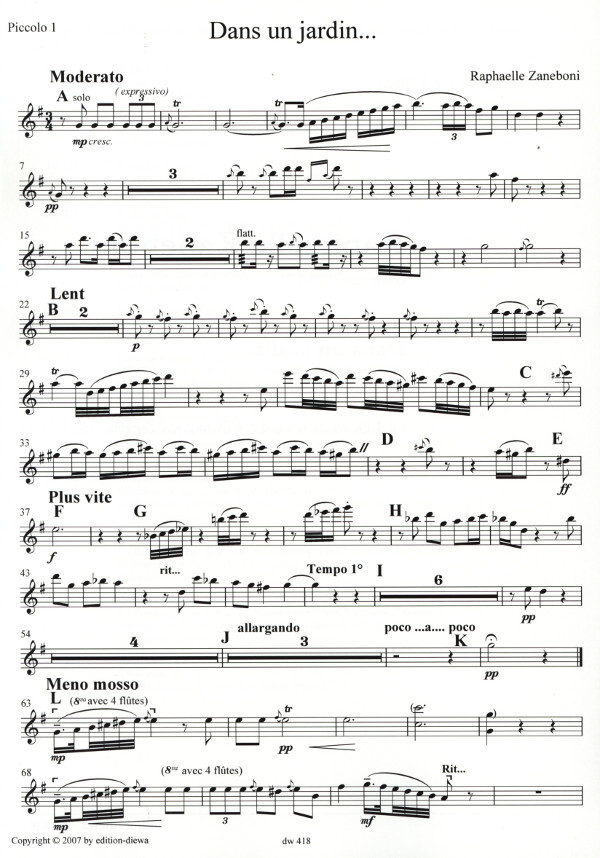 4 Piccoloflöten (4. Stimme wechselt auf Flöte) oder 4 Flöten und Sprecher (ad libitum)