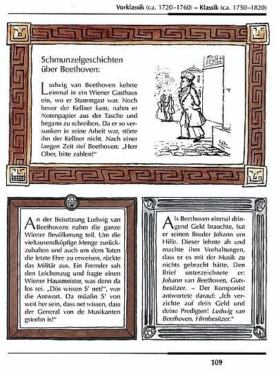 Antworten auf diese Fragen werden sowohl im Erzähltext als auch auf den attraktiv gestalteten Infoseiten gegeben. Mit den Schmunzelgeschichten kann man sich über große Komponisten amüsieren und in den verschiedenen Musikquiz sein Wissen testen.