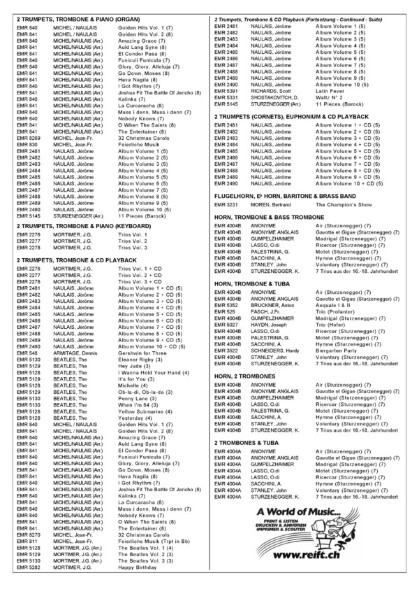1st Part: Trumpet / 2nd Part: Trumpet or F-Eb Horn / 3rd Part: Trombone or Euphonium It's Time / Julito Mio / Just One / Key West / La Zorra