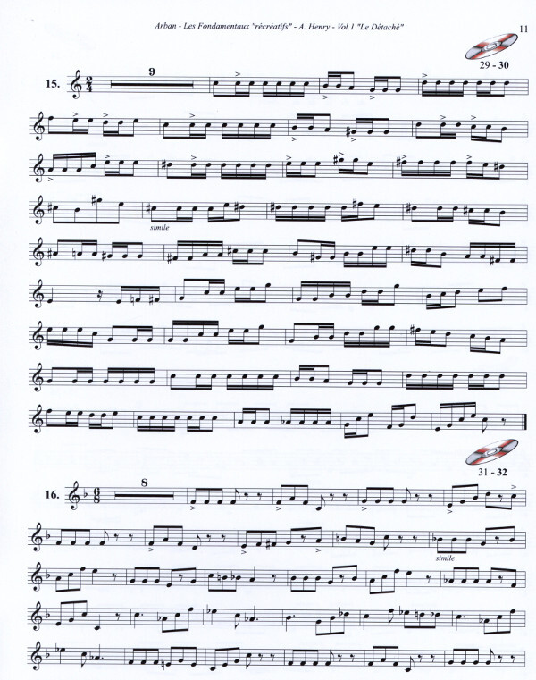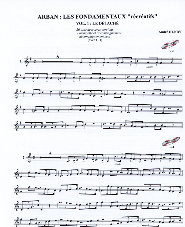 26 Übungen ARBAN CBD Verfahren mit Begleitung Volumen 1 Diese neue Kollektion von André HENRY ist es, die Anordnung détaché.Chaque Begleitungen studieren verwandelt diese Übungen spielen eine sehr lustig und unterhaltsam zu arbeiten.