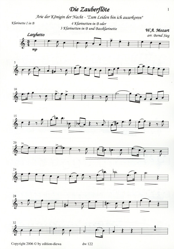 aus der Oper "Die Zauberflöte" sehr gut für Klarinettenquartett arrangiert,