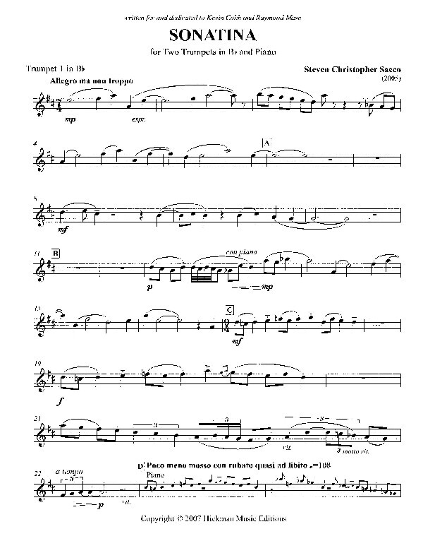 (2007 in drei Sätzen: Allegro ma non troppo - Andante espressivo - Presto) 2 Trompeten in B und Klavier