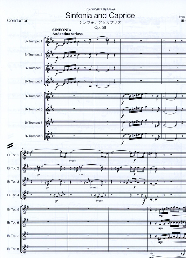 Sinfonia and Caprice besteht aus zwei kontrastierenden Teilen. Typisch für beide Teile ist die Aufteilung der acht Stimmen in zwei vierstimmige Gruppen, die miteinander im Dialog stehen.