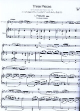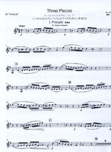 Three Pieces ist eine Suite für Trompete und Klavier, die drei unterschiedliche musikalische Charaktere zu einem stimmigen Ganzen zusammenführt: ein mäßig schnelles Prelude nach Art eines Menuetts, eine lyrische, von fanfareartigen Abschnitten unterbrochene Ballade sowie eine mitreißende Tarantella als Kehraus.