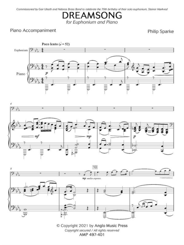 Dreamsong wurde von Geir Ulseth und der Nidaros Brass Band aus Trondheim (Norwegen) in Auftrag gegeben. Nach einer kurzen Einleitung führt der Solist eine etwas nostalgische Melodie ein, bevor das Klavier mit einem etwas schnelleren Zwischenspiel in den Mittelpunkt rückt und das Stück zu einem dramatischen Höhepunkt führt. Schließlich wird das Hauptthema vom Klavier wieder aufgegriffen, begleitet von einer verzierten Gegenmelodie des Solisten, der das Stück dann mit einer kurzen Kadenz beendet. Die Ausgabe enthält die Solostimme im Bass- und im Violinschlüssel.