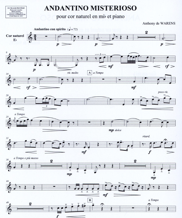Andantino Misterioso pour cor naturel en mib et piano